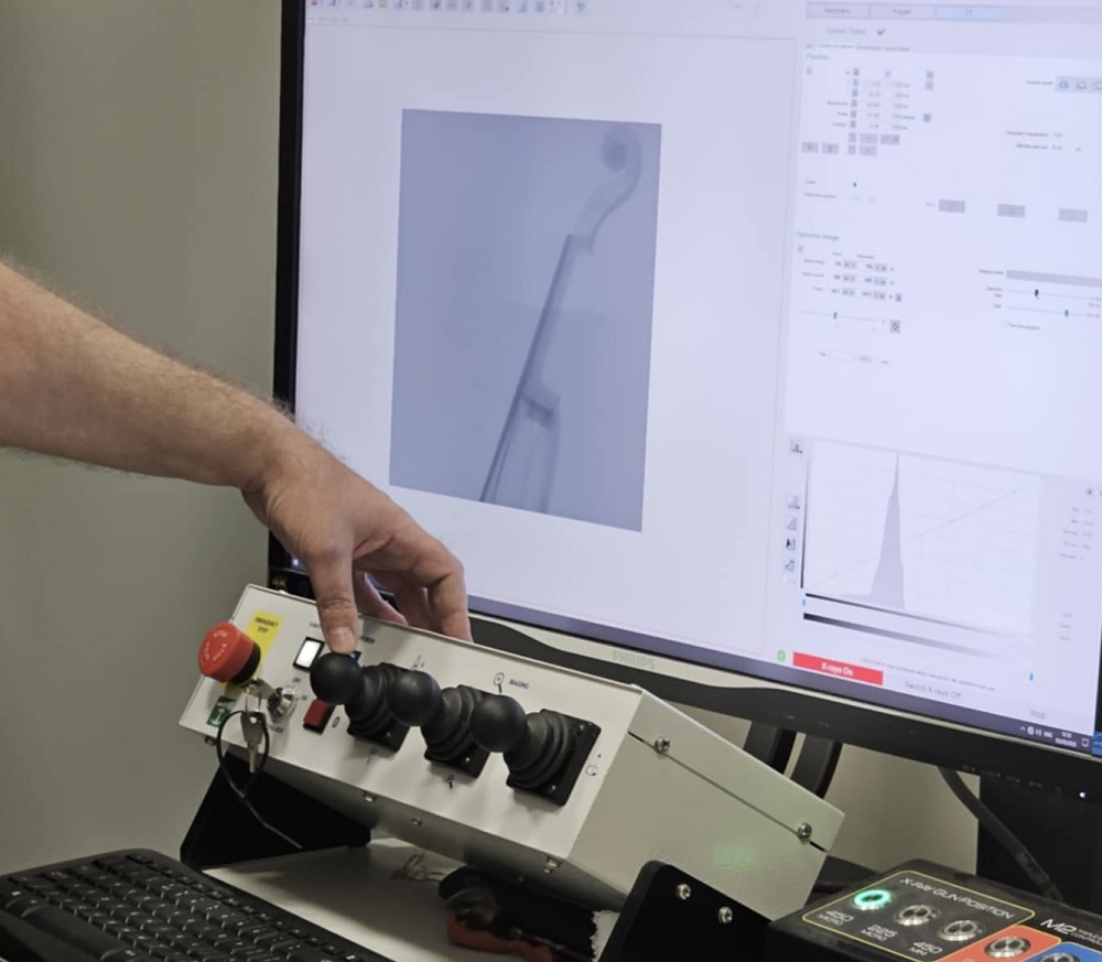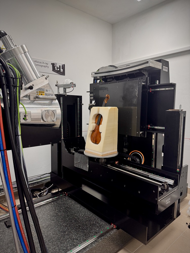 Dzięki uprzejmości Janusza Wawrowskiego, który użyczył instrumentu do badań, możliwe było przeprowadzenie unikatowej analizy na Politechnice Świętokrzyskiej. Skrzypce trafiły do laboratorium, gdzie zostały przebadane przy użyciu jednego z najdokładniejszych urządzeń tego typu na świecie – tomografu komputerowego NIKON M2 LES System, oferującego rozdzielczość pomiarową rzędu kilku mikrometrów (ok. 0.01 mm).